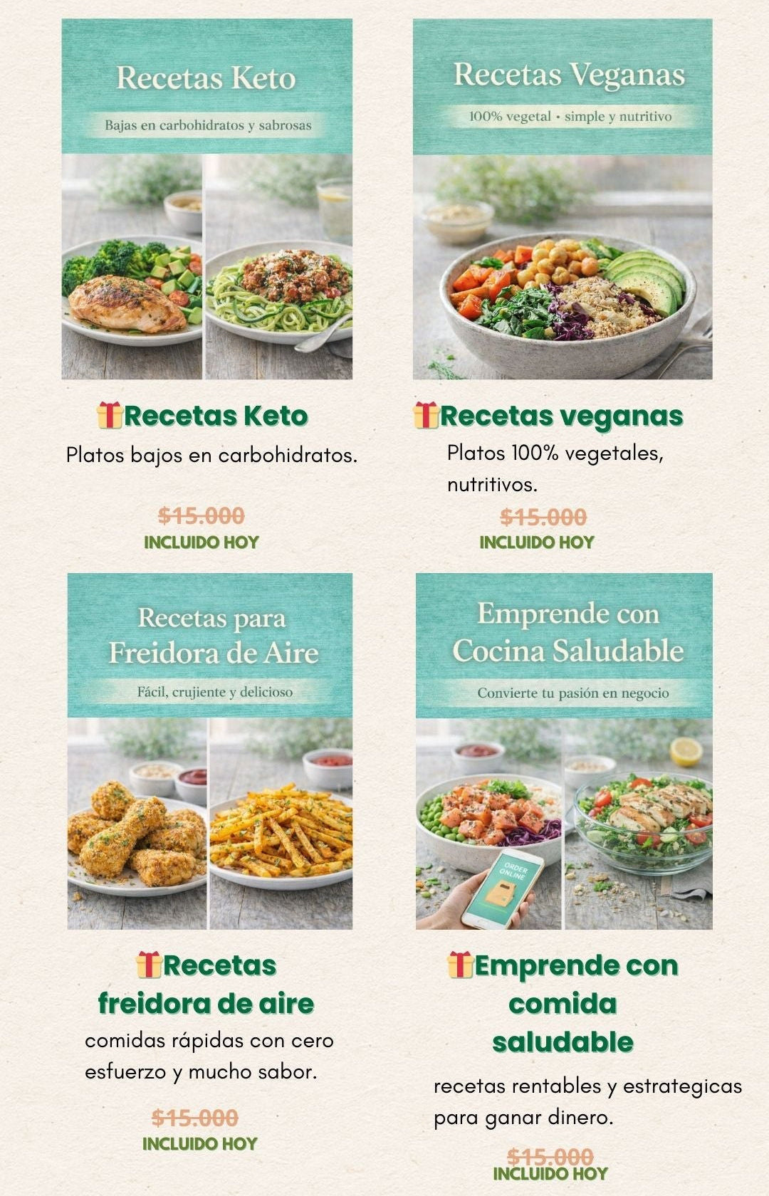 Vas a recibir un ebook digital en formato PDF directamente en tu correo electrónico. Es una guía completa para aprender a cocinar recetas saludables, fáciles y deliciosas, sin necesidad de tener experiencia previa. Lo podés descargar y conservar para siempre.